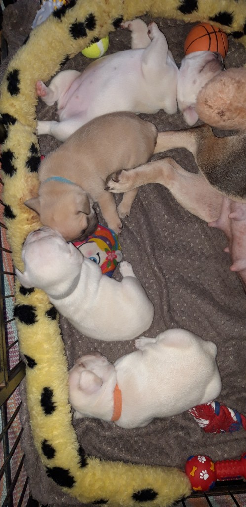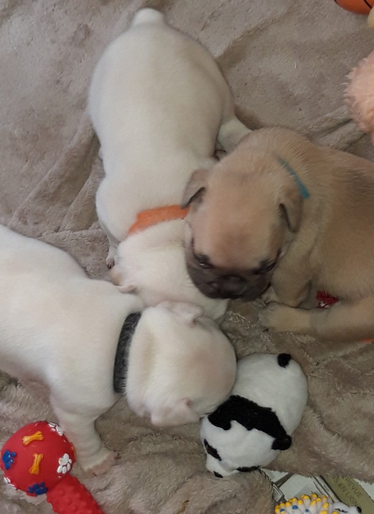 Je continue à m’interroger sur la couleur exacte de la petite troupe version blanc : platinium, crème, blanc ? En regardant sur le net, ils peuvent correspondre aux 3 versions. Ils ne sont pas albinos, c’est sûr, ni noir, ni tâcheté vache (caille pour ma nièce, c’est plus parlant, on est d’accord, et ça me fait beaucoup rire).
