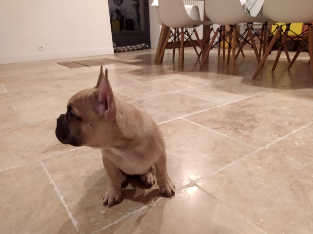 Il a été d’une sagesse exemplaire pour ses premières 24 h dans sa famille : pas de couinements, pas de grincements, pas de chouignements (si j’ose dire), mais plein de câlins en version « pot de colle » !