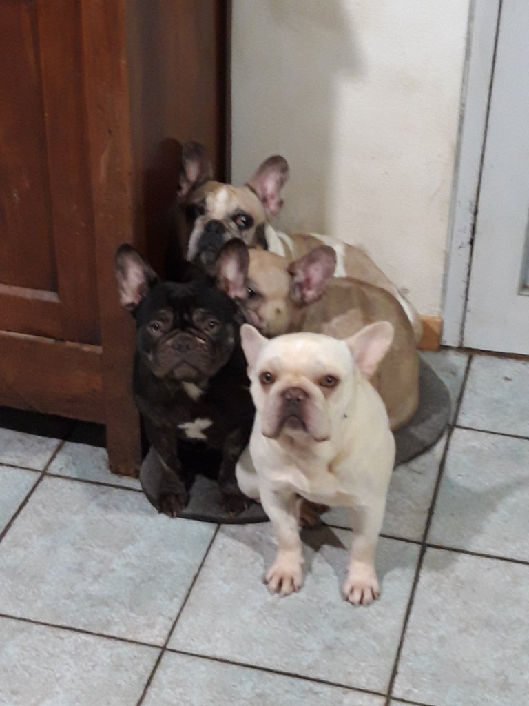 Venez les rencontrer, les admirer et voir leurs parents, Stitch platinium) et Joy (caille fauve merle fantôme) qui vivent avec nous… Ici avec deux autres femelles, Radieuse (fauve) et Telma (black tan trindle).