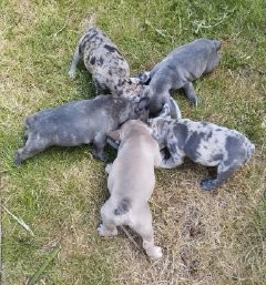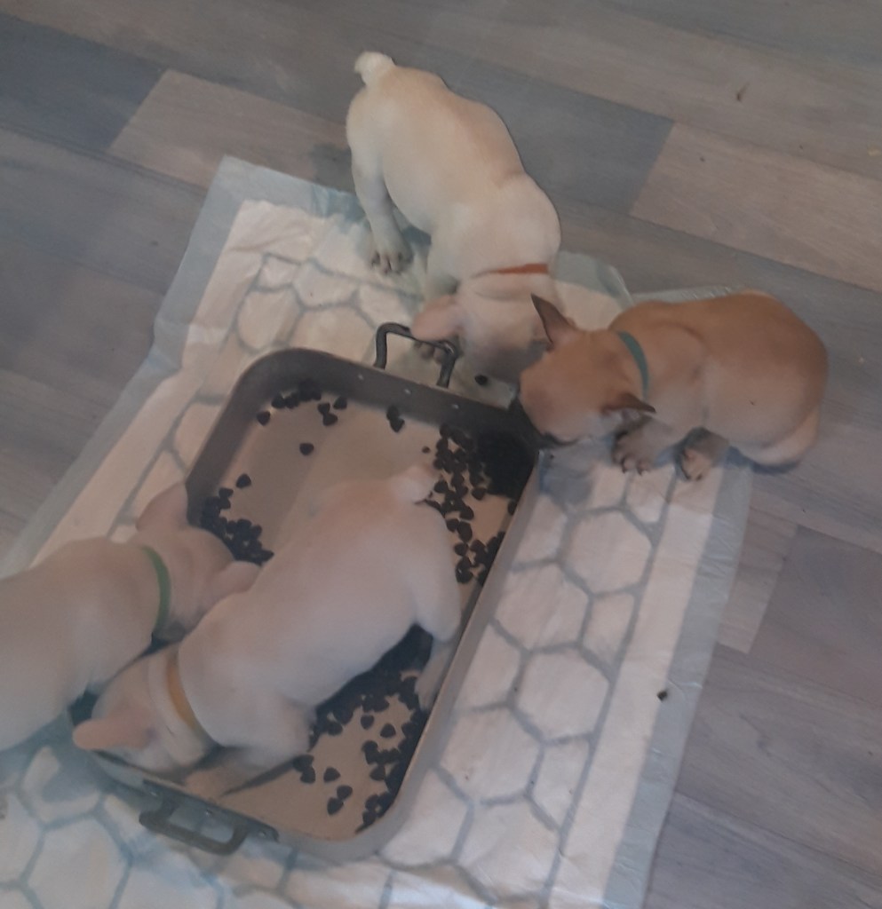 Passons aux bébés : dans l’ordre, la portée de Shelby, née le 8 août 2023, qui se compose de Ups, U-Back, Buddy né Unten, et Urlo.