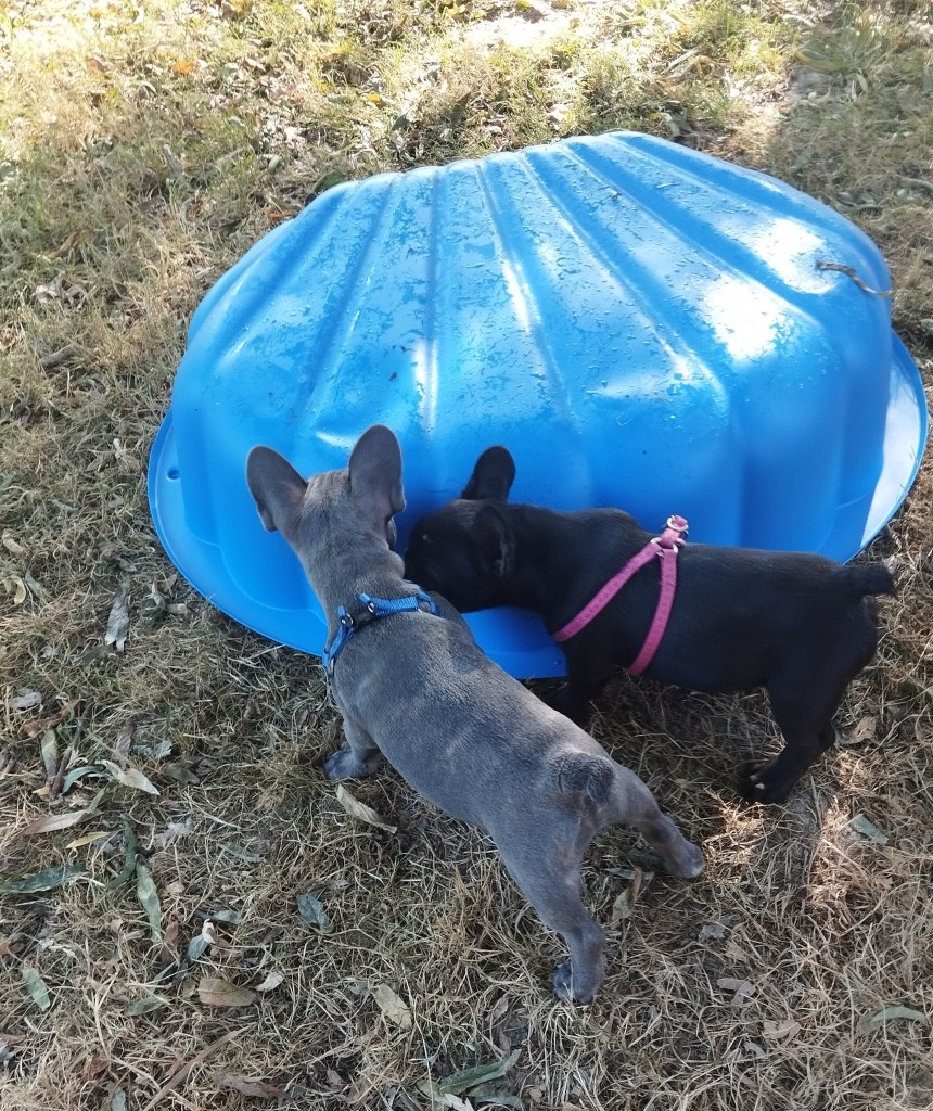 Merci, Alfie, pour ta précieuse aide, mais non, les harnais ne s’enlèvent pas comme ça ! J’espère qu’ils se trompent à la météo, j’aimerais bien faire un p’tit tour dehors dans la matinée en fin de semaine…