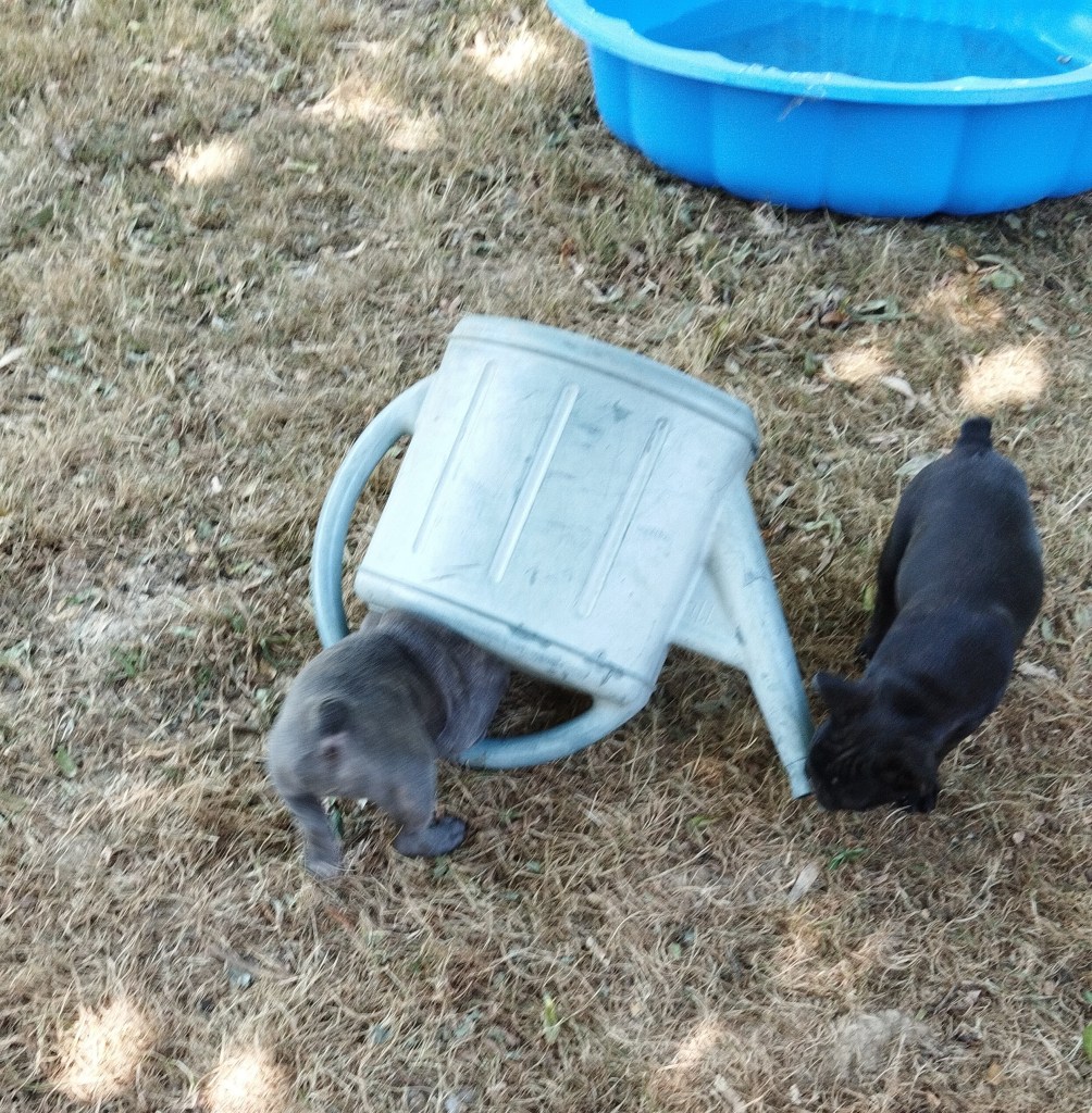 Dans l’après-midi, les babies sortent du parc pour jouer avec les adultes, et… avec l’arrosoir ! Les fifilles sont sympas, elles ont fait attention au dégradé des couleurs. Alfie, Abby et Aïko testent ce nouvel instrument.