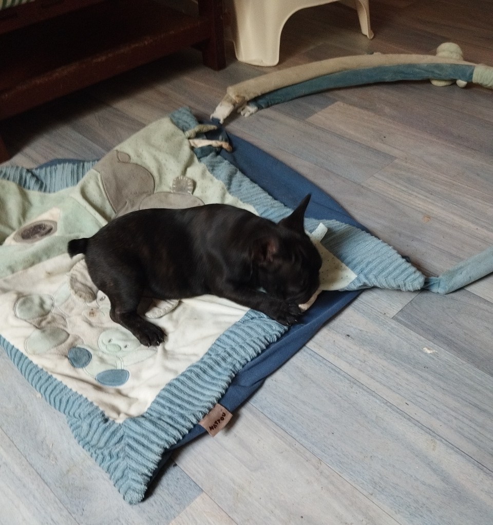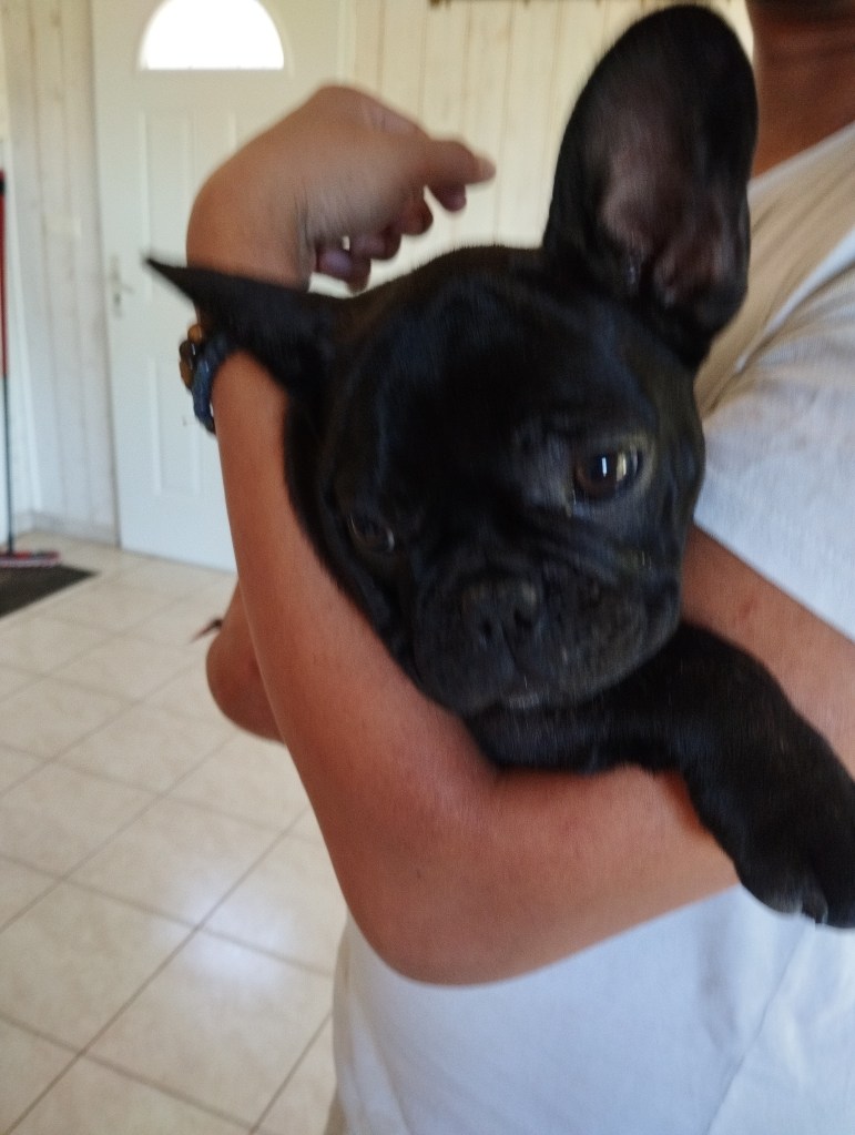 Alfie a fait un grand nombre d’heures de voiture avec ses nouveaux parents : elle est partie du côté de la Rochelle et sa famille, à l’aller, a eu droit successivement à un accident, un incendie et un bouchon sur le pont de Cheviré… Je n’ai pas osé demander pour le retour, mais en tout cas la demoiselle est arrivée sans encombre !