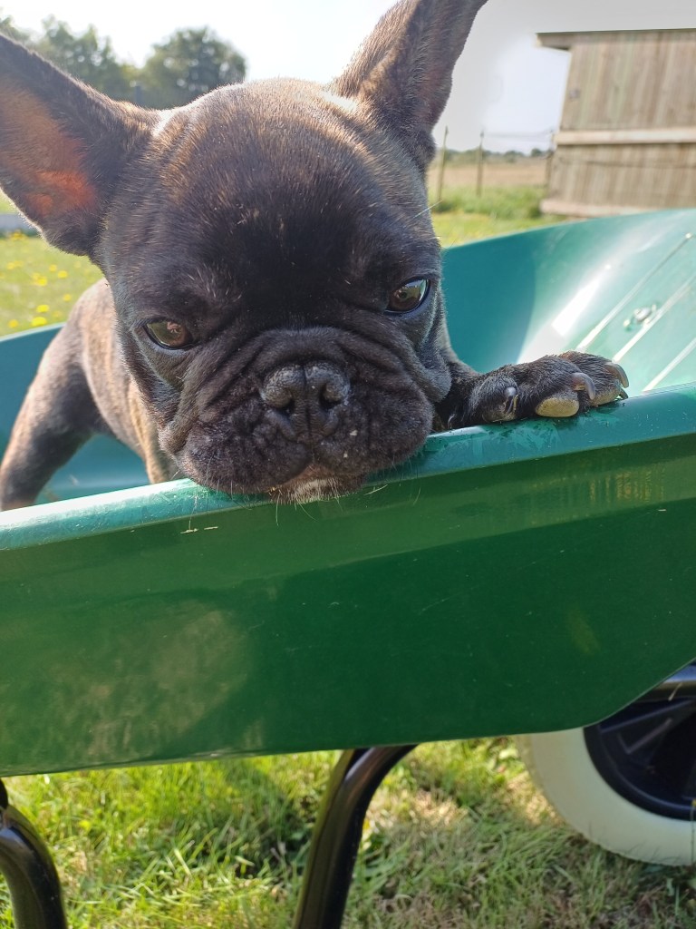 Il a gagné son surnom : après Maguy la starlette parisienne, Winnie le sportif angevin, nous avons donc Artchie l’intrépide ! Sa nouvelle copine ne risque pas de le battre aux 100 m départ arrêté. Tu portes dignement les couleurs de l’Élevage des Boulis de l’Isac, merci à ta famille de cœur de te faire vivre toutes ces expériences – et de nous en faire profiter ! –