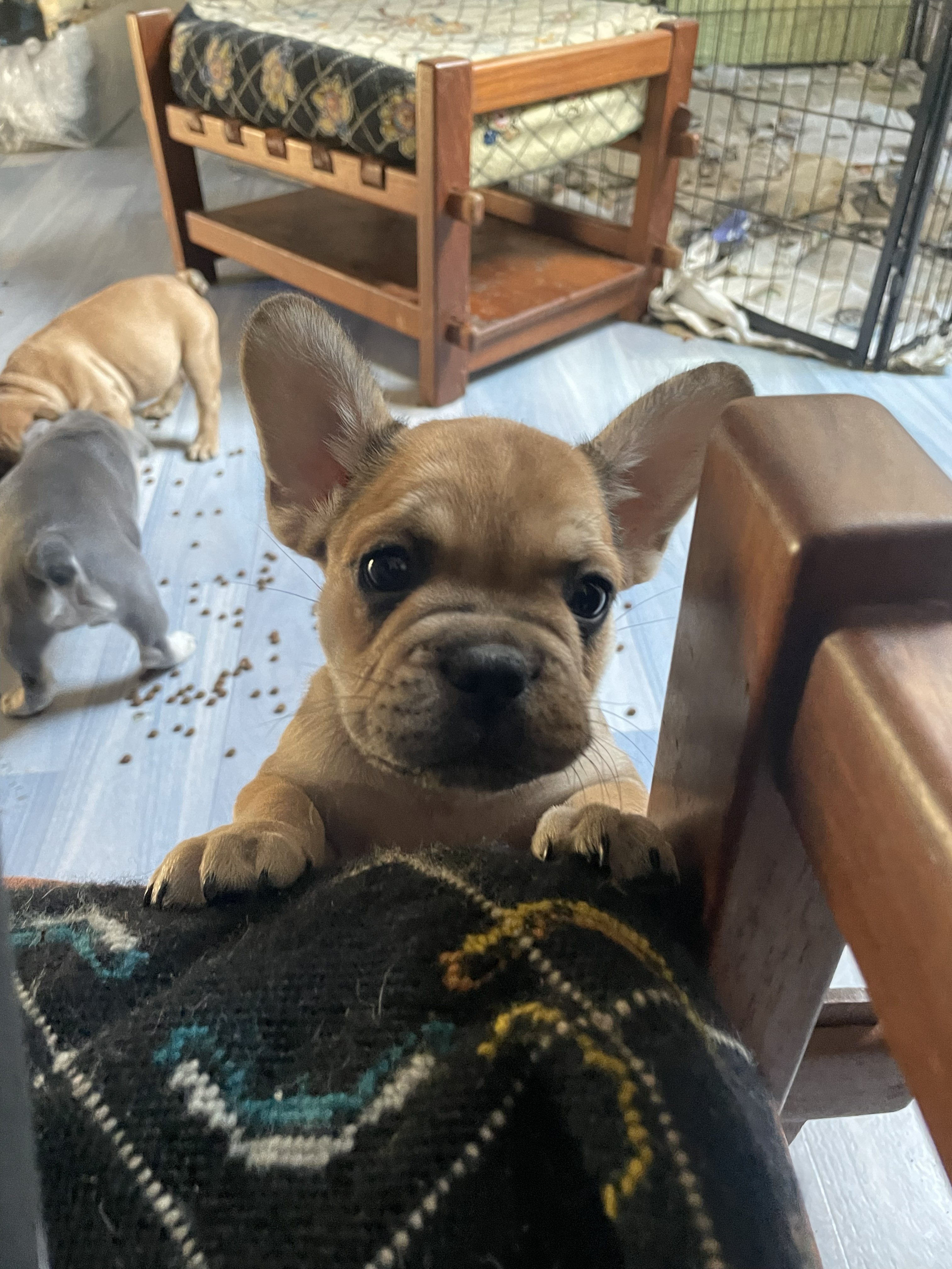 Pour le moment, c’est une portée extrêmement sage : je n’ai pas encore eu besoin de changer le parc pour mettre des éléments plus hauts afin de prévenir toute fugue nocturne, contrairement aux petits de Ragga qui grimpaient partout !