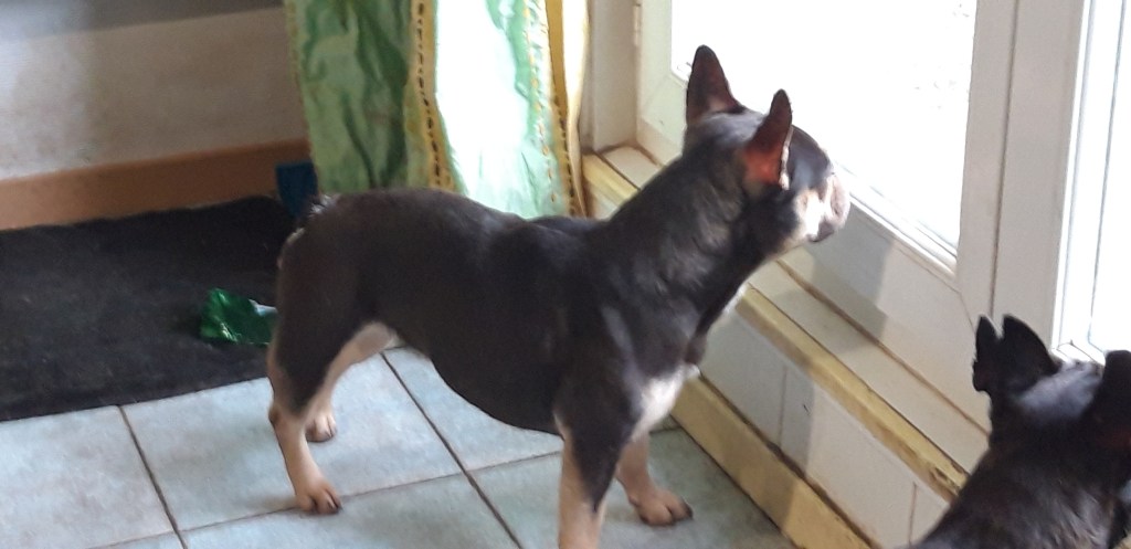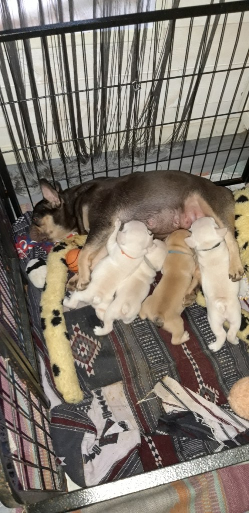 Trois chiots sur quatre sont la copie conforme de leur père platinium (2 femelles, 1 mâle) et donc collier obligatoire pour les différencier au premier regard… La maman est chocolate tan (1ère photo), et le papa platinium (2ème photo).