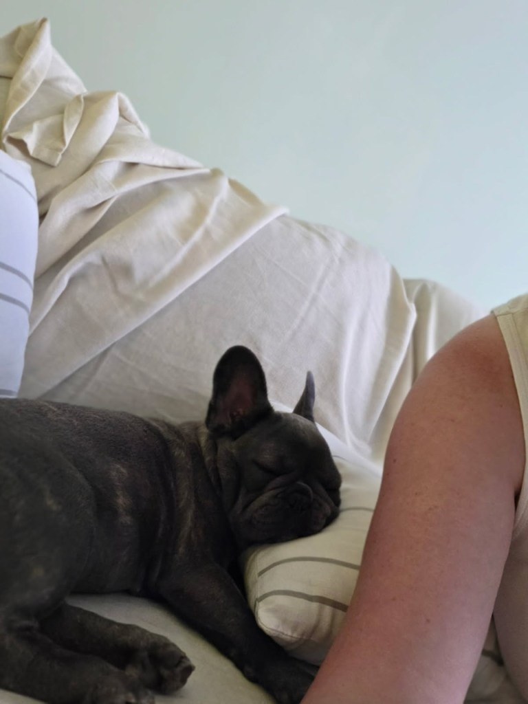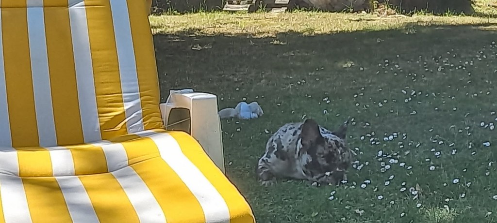 J’ai plein de bonnes nouvelles de toi – tu es gâté, des jouets à profusion, un magnifique panier, et une maman qui reste tous les jours à la maison, ce qui te permet de la suivre comme son ombre… Un vrai bouledogue français !