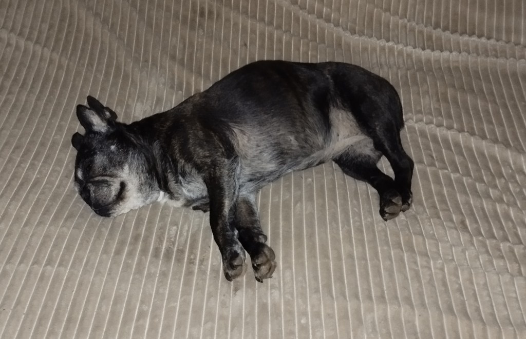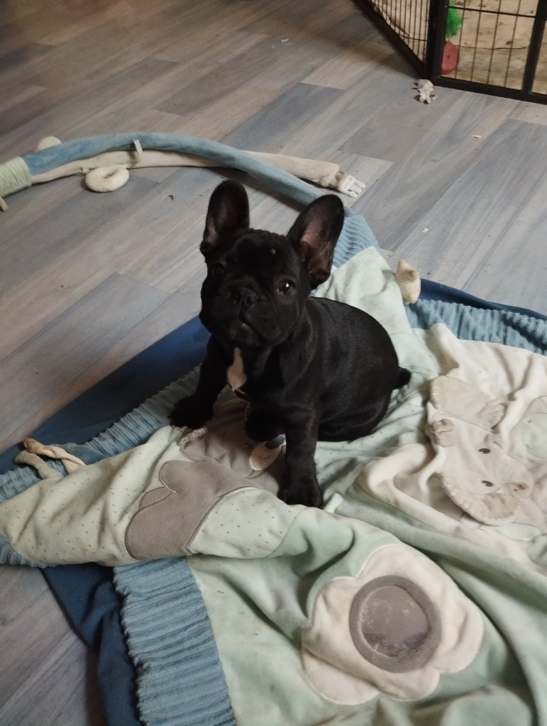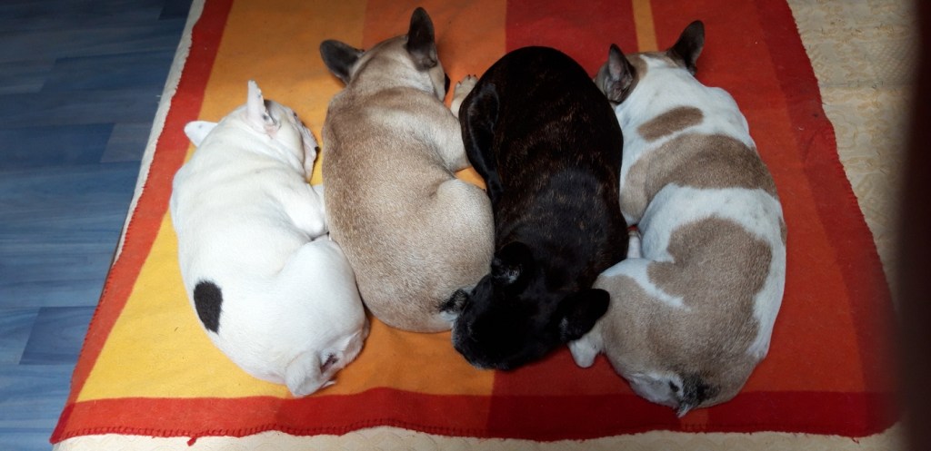 Il est né le plus petit de la portée, et donc il a bénéficié de compléments au biberon très rapidement. Dès que j’ouvrais le nid, il rampait vers moi et se blottissait entre mes jambes pour sa dégustation quotidienne. Je faisais ce protocole car deux des femelles – Abby et Alfie – étaient bien en chair, et donc le poussaient pour régner en maître sur les mamelles de Telma ! Même chose pour les deux autres femelles, devenues depuis Aria et Aïko. En plus, j’ai toujours la crainte d’un problème de santé pour la maman (mammite, infection de la laparo nécessitant un traitement par antibiotiques, …) empêchant l’allaitement. Comme ça, tout le monde a goûté au biberon et si transition obligatoire, elle sera moins compliquée à mettre en place !…