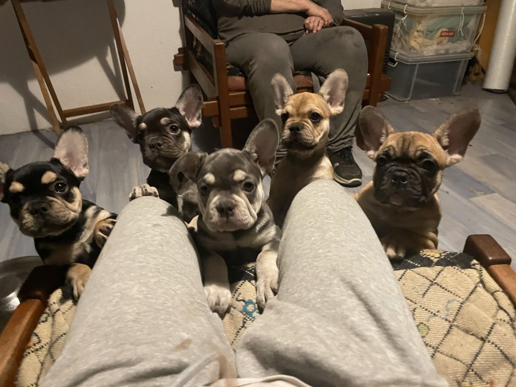 De même, je créerai leur page personnelle, à l’intérieur de la page « Portée de Vanya ». Les réservations seront ouvertes début janvier 2026, pour un départ au plus tôt début février. Chez les Boulis de l’Isac, les chiots ne partent pas avant leurs trois mois, pour non seulement assurer un sevrage alimentaire optimum (je ne commence jamais avant leur deux mois, et s’ils refusent la bonne bouillie (1ère étape), pas grave, je continue l’allaitement couplé aux biberons). Nous faisons également un sevrage psychologique, avec des rencontres avec les autres adultes, leur père, Stitch, et notre fila brasileiro, Ondine, chien de garde, qui se laisse martyriser avec la meilleure volonté du monde par les portées de bouledogues français.