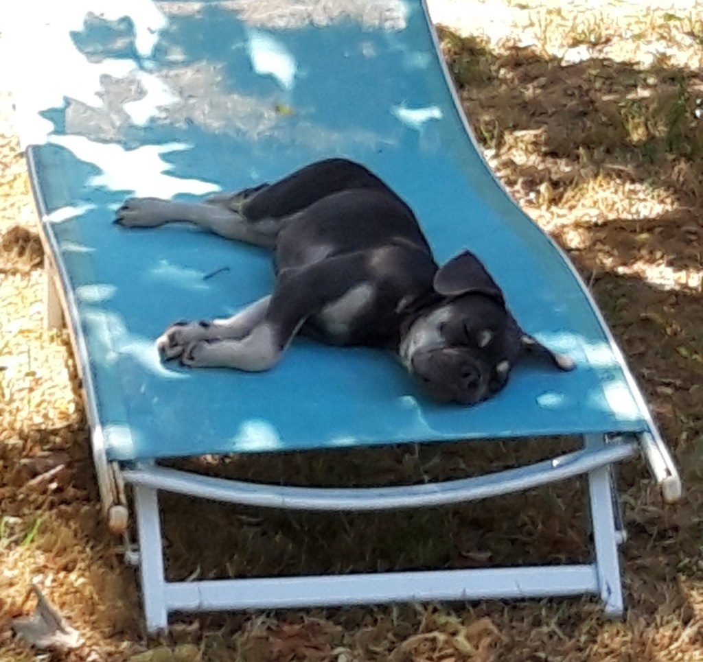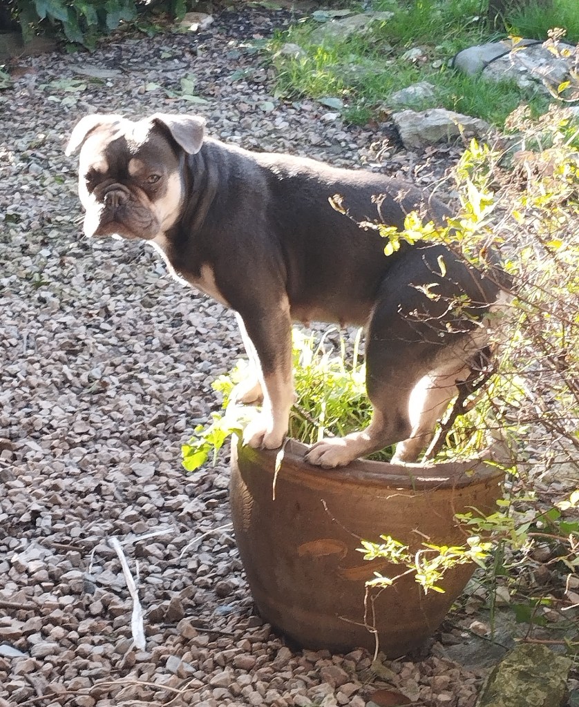 Elle est lilac tan, s’occupe beaucoup des chiots de l’Elevage, et adore rester seule dehors devant le portail pour regarder ce qu’il se passe sur la route. Elle n’a pas encore eu de petits, elle est tellement haute sur pattes que Stitch n’a jamais réussi à la saillir ! J’abandonne, et elle va aller recevoir une insémination dans un Élevage ami, qui possède un mâle de toute beauté qui, comme elle, a des résultats génétiques parfaits. Ce qui me permettra, si j’ai de la chance, de garder un de ses fils pour remplacer Stitch… En principe, elle devrait être à nouveau en chaleur cet été…