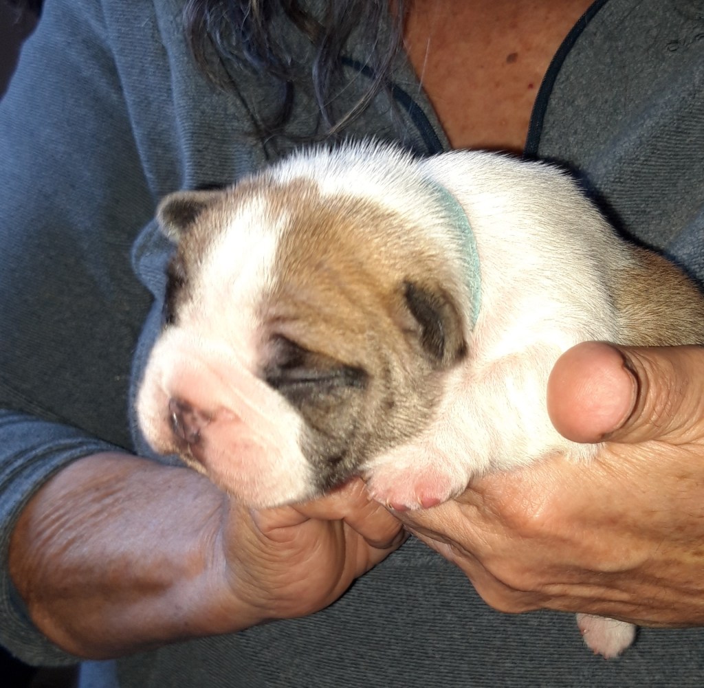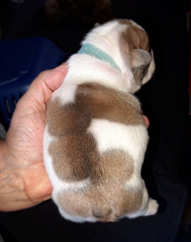 Il a décidé d’être le dernier en tout : pour marcher – il a fait « la tortue » très longtemps et je commençais à m’inquiéter, et maintenant pour lever ses oreilles… Ça va faire bientôt 2 semaines que tous ses frères arborent fièrement des oreilles toutes pointues, lui continue à jouer les « saint benard ». J’exagère : parfois, pendant 10 secondes, il lève l’oreille droite, et boum, ça retombe !