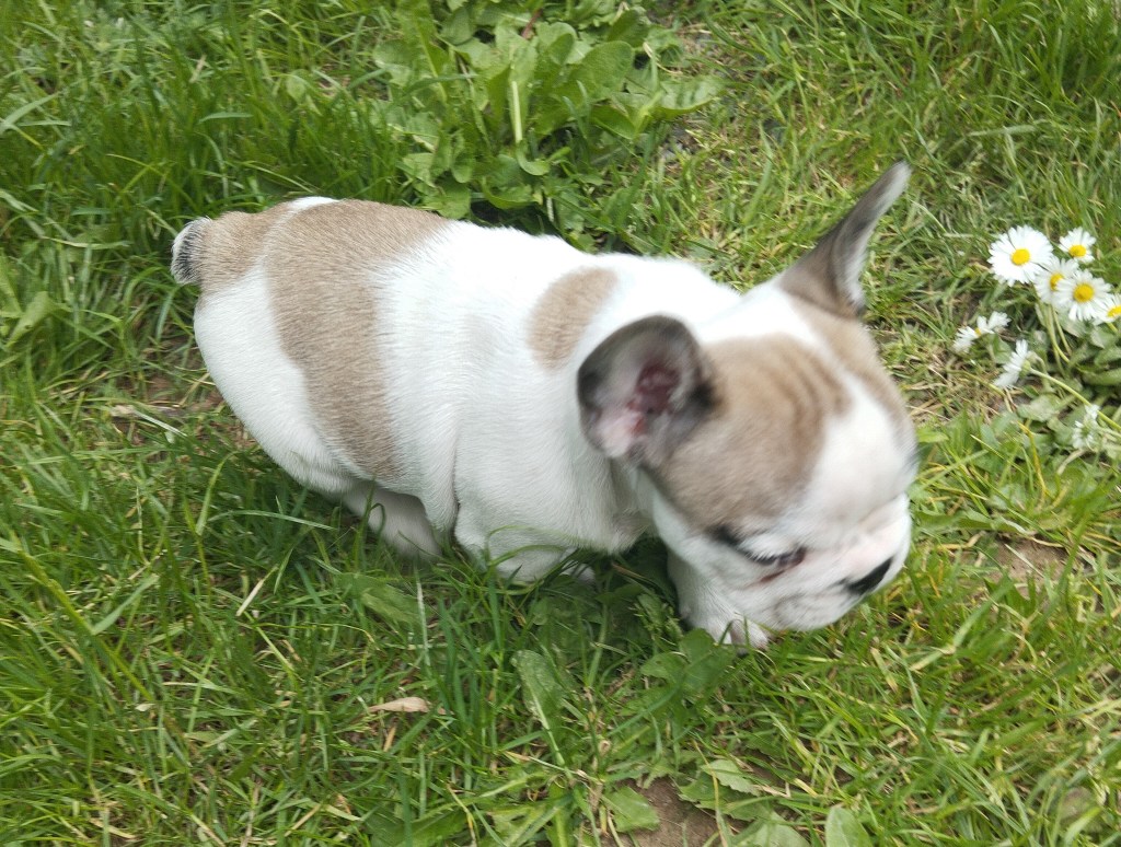 Vuk reste d’une taille supérieure à la moyenne – je pense qu’il fera sans doute 14-15 kg – et il est très bien proportionné et équilibré dans son gabarit. Il est assez vif, c’est le premier à initier les bagarres entre frères, et il se fait souvent gronder par Itie, la matriarche, qui ne supporte pas les bousculades et les chiots trop entreprenants… Il va apprendre, déjà il est plus respectueux.